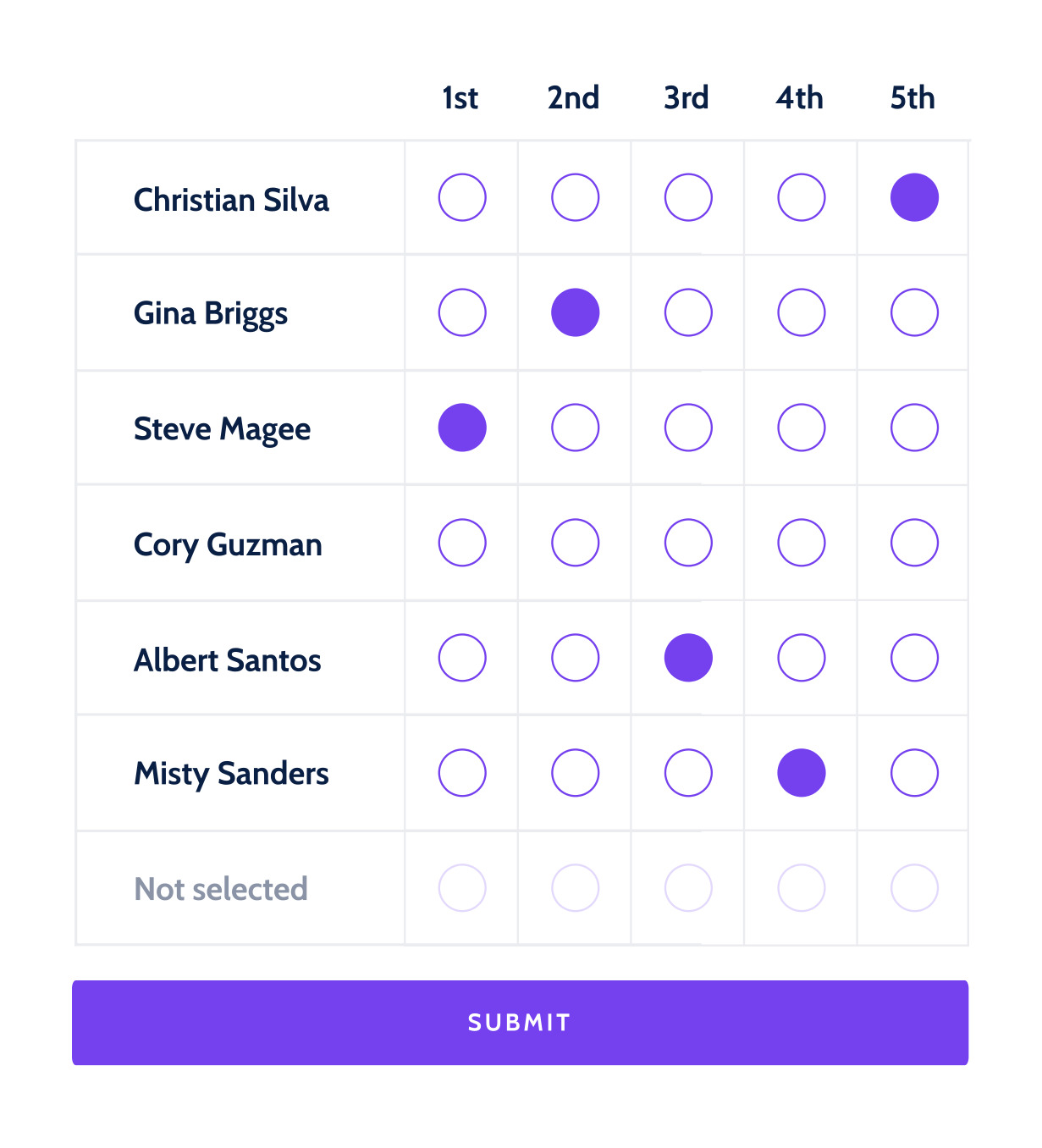 Each voter selects their most preferred choices on the ballot. First, second, third, and so on.